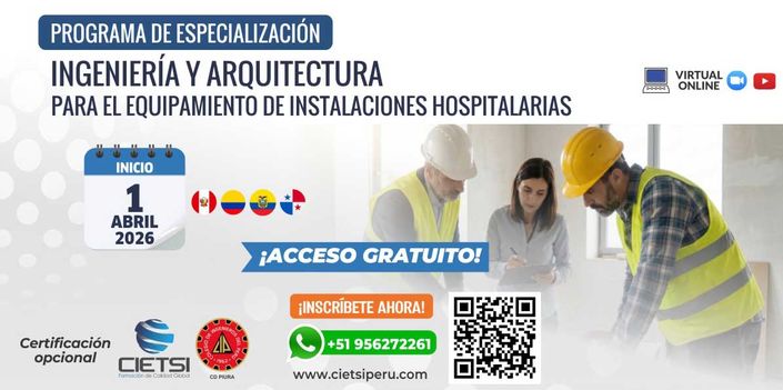 Especialízate en instalación y puesta en marcha de equipamiento médico hospitalario. programa virtual con certificación opcional a nombre de CIETSI, CIP y UNT. Inicio: julio 2025.