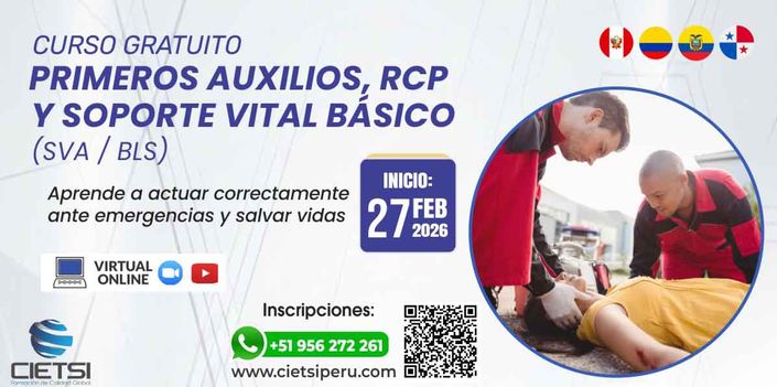 CURSO GRATUITO DE PRIMEROS AUXILIOS RCP Y SOPORTE VITAL BÁSICO (SVA/BLS) 2026